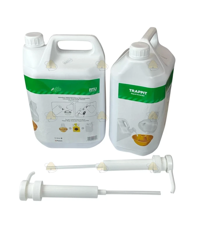 De jerrycans hebben een inhoud van 5 liter lokmiddel en wordt geleverd met een handig doseer pompje. Deze schroef je eenvoudig op de jerrycan. Trappit is een mengsel van voedselingrediënten zoals suiker, conserveringsmiddelen van levensmiddelenkwaliteit en kleurstoffen. Trappit bevat géén insecticide.