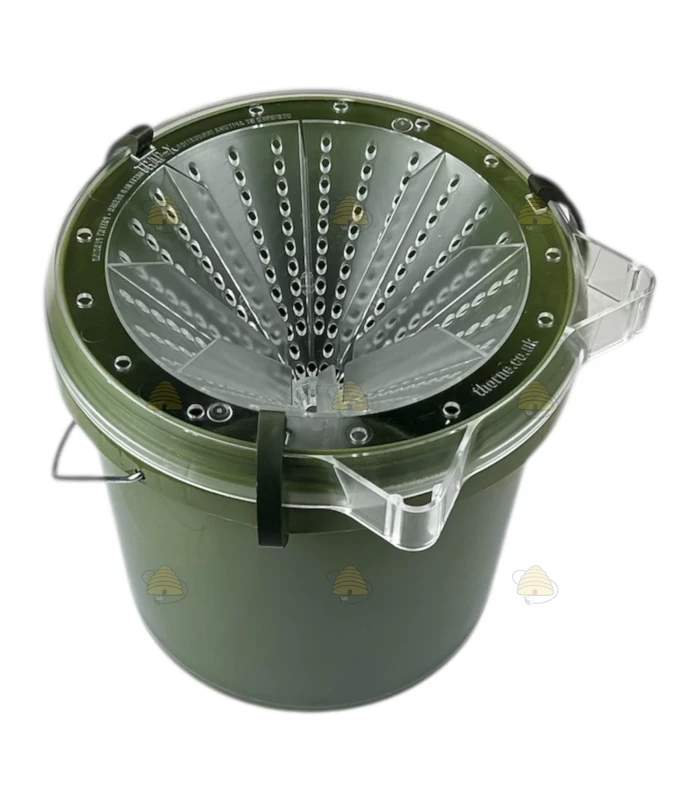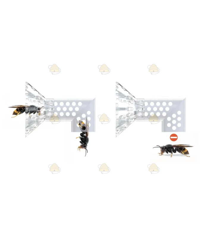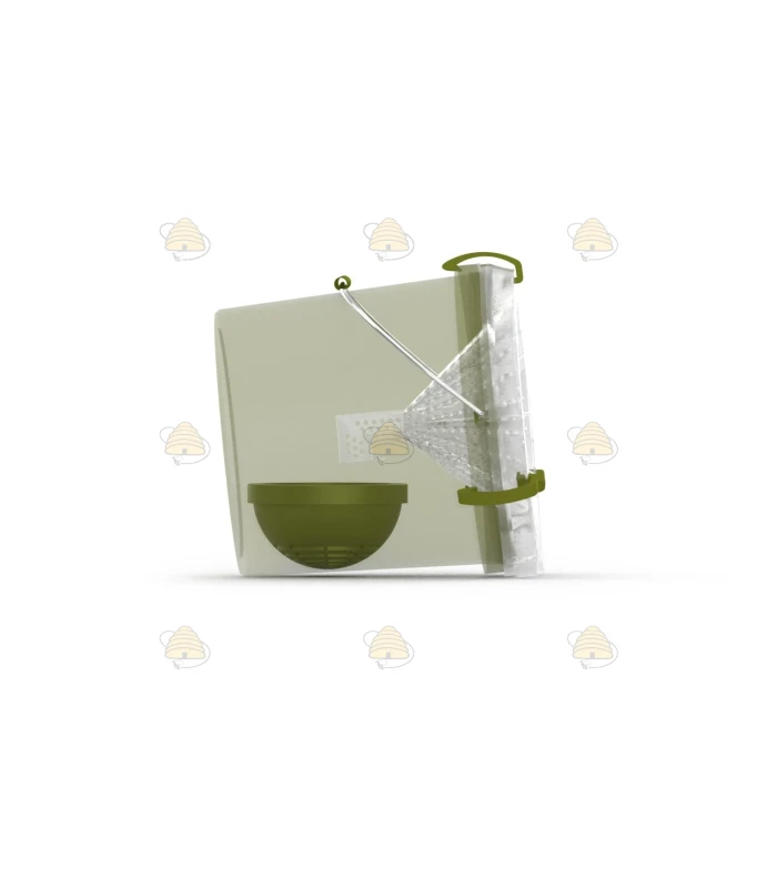 Zeer degelijke grote hoornaarval geleverd in transparant met een donkergroene emmer. Je kunt deze hoornaarval zowel staand als liggend (dankzij de staanders) gebruiken. De val en emmer worden geleverd inclusief klemmetjes om de val aan de emmer te bevestigen. Aan het uiteinde van de val binnenin de emmer zit een extra buisje met een hoek. Dit maakt het voor de hoornaar onmogelijk om te ontsnappen.