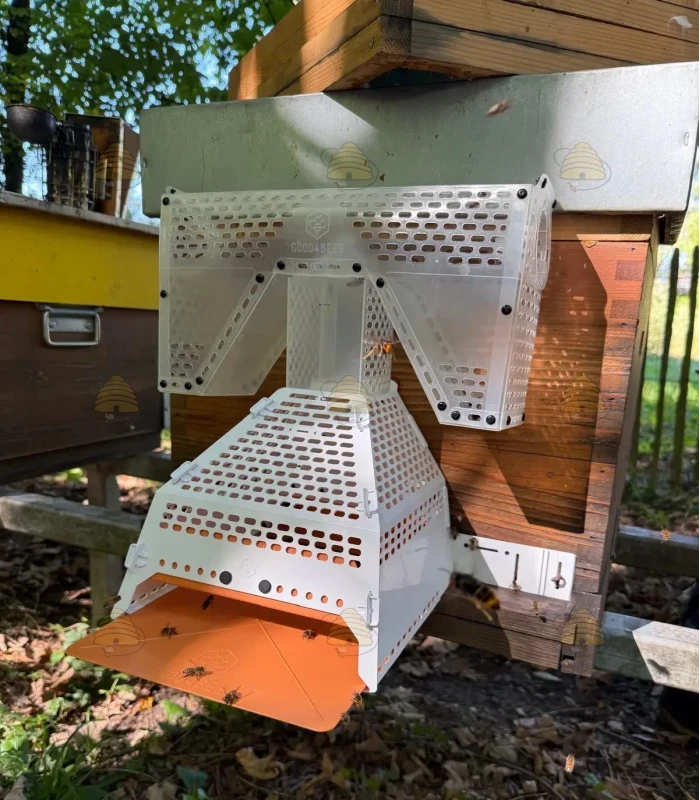 De wanden zijn ondoorzichtig gemaakt om bijenstress te verminderen, de val is selectief, de kooi heeft een zeer hoge in- en uitlaatsnelheid voor je bijenvolk. De kooi + val is eenvoudig te installeren en geschikt voor vrijwel elke maat bijenkast. Het reinigen van dit product is overigens ook zeer eenvoudig.