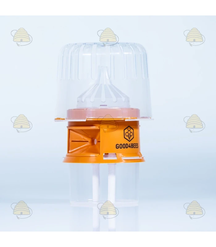 Aan de zijkant van de val wordt de hoornaar naar binnen geleid. Zodra hij de val binnenvliegt, wordt hij automatisch aangetrokken door het licht dat door de transparante bovenkant binnenvalt. Via de kegelvormige doorgang vliegt hij naar het bovenste compartiment van de val.