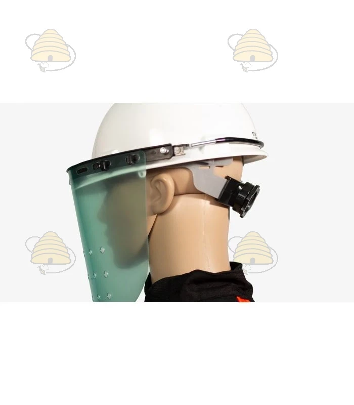 In het pak bevindt zich een verstelbare helm van kunststof, voorzien van een kunststof vizier zodat de afstand tussen het gaas en je hoofd altijd gelijk blijft en je nauwelijks door het gaas gestoken kan worden in je gezicht. Ook biedt deze kunststof helm met kunststof vizier op zich al extra bescherming. De helm zit vast aan de kap met gaas d.m.v. klittenband. Het vizier zelf is gemaakt van een goede en stevige kwaliteit gaas. Je hebt maar liefst 180 graden zicht. De kap is los afritsbaar en kan apart gewassen worden.