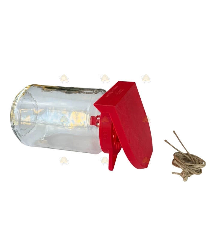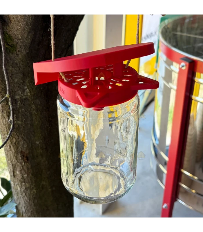 Rode hoornaarval voor op een pot van 82mm TO. Deze basis hoornaarval is zeer gemakkelijk te installeren (schroef de val op de pot en klaar) en biedt een goedkope oplossing om Aziatische hoornaars te kunnen vangen. Je kan deze val liggend, staand en hangend gebruiken. Voeg de lokstof toe op een stukje spons in de pot. De val past op potten met dekselmaat 82 mm TO.