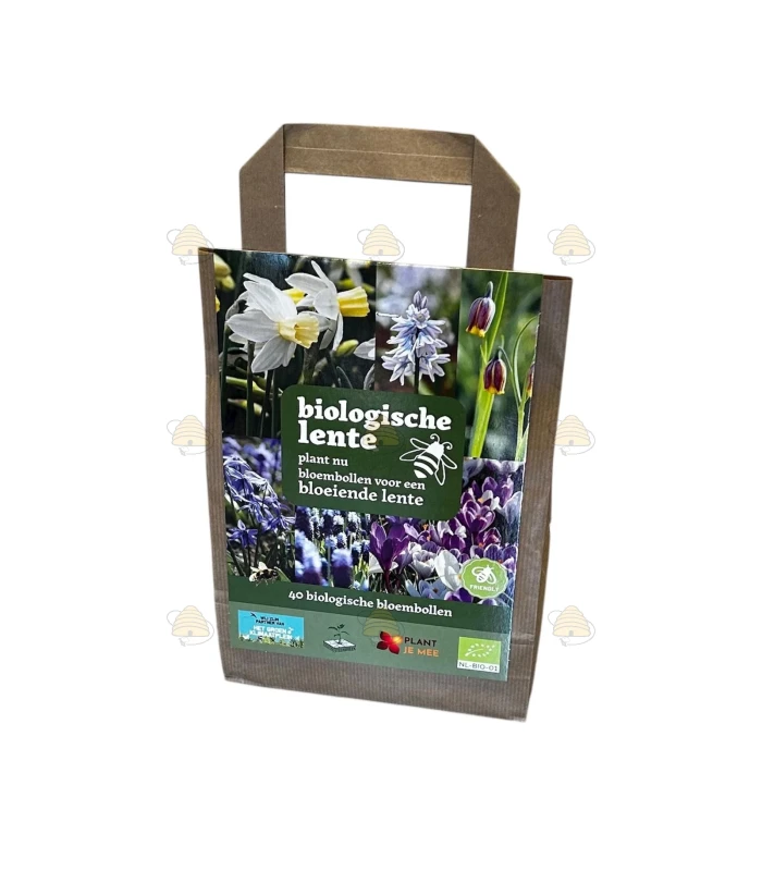 Tas met een mengsel van biologische en bijvriendelijke bloembollen. In de tas vind je 40 bloembollen waarmee je een bloeiende lente creëert.