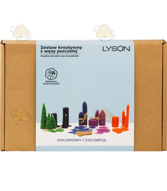 Creatief pakket om zelf kleurrijke kaarsen te rollen en hangers te maken. Maak unieke kaarsen zonder dat je bijenwas hoeft te smelten. Het pakket bestaat uit 5 kleuren bijenraat vellen van 205 x 335 mm, klosjes lont en 12 stansmallen.