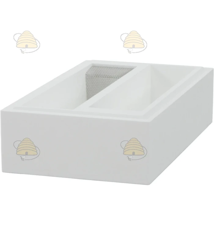 Voerbak voor de 10-raams bijenkasten uit de Multi-Frame lijn. Deze voerbak is gemaakt van een hoge dichtheid wit ongeverfd EPS / polystyreen en bestaat uit 2 delen met elk een inhoud van 4,5 liter. De voerbak is passend op elke soort bijenkast uit de Multi-Frame collectie met een laag dak.