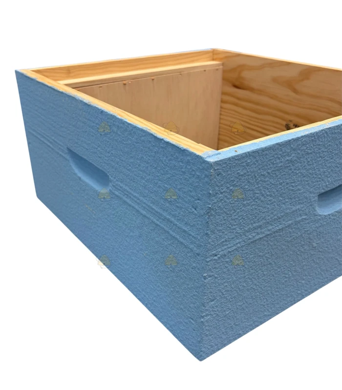 Geverfde broedkamer voor de Spaarkast bijenkast (Simplex raammaat). De broedkamer is gemaakt van grenen en is zandgeverfd in de kleur lichtblauw.