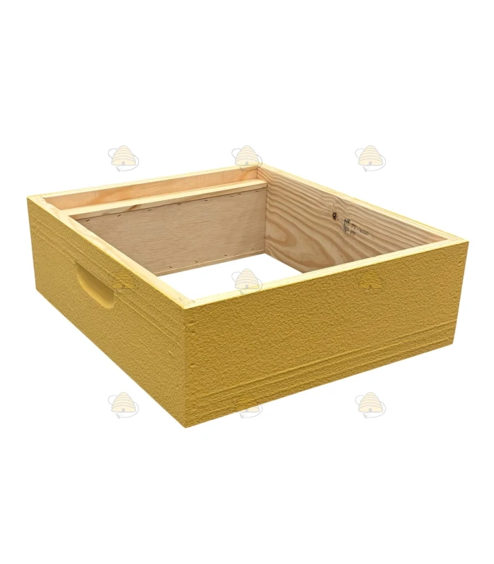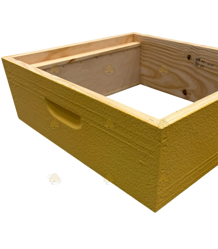 Geverfde honingkamer voor de Spaarkast bijenkast (Simplex raammaat). De honingkamer is gemaakt van grenen en is zandgeverfd in de kleur lichtgeel.