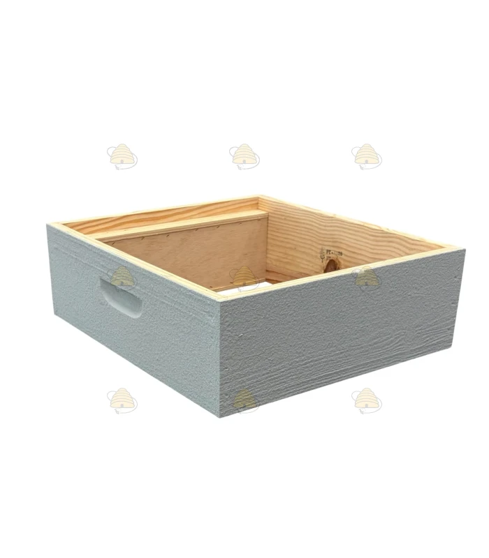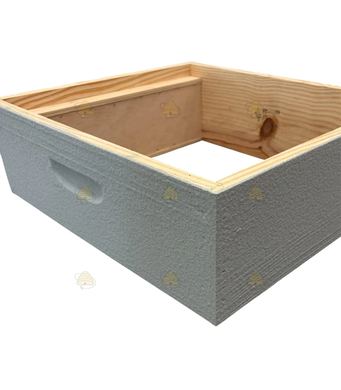 Geverfde honingkamer voor de Spaarkast bijenkast (Simplex raammaat). De honingkamer is gemaakt van grenen en is zandgeverfd in de kleur zandgrijs.