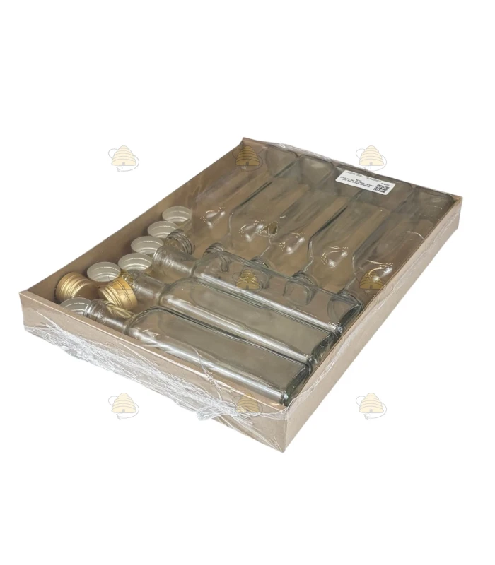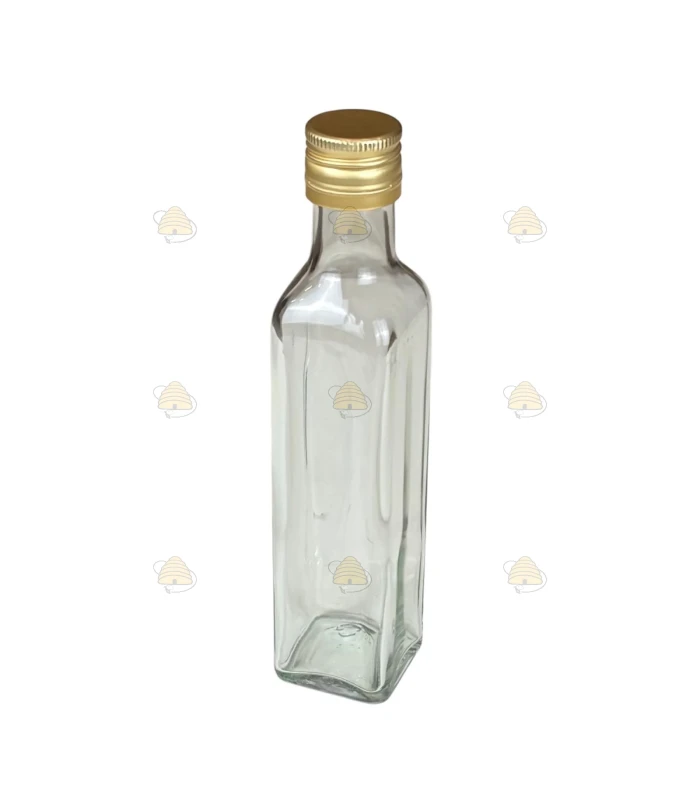 Vierkante glazen fles met metalen draaidop 250 ml, per 8 stuks