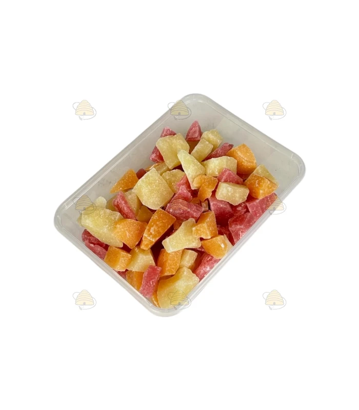 Heerlijke hakhoning energieboostmix met cranberry, sinaasappel en naturel honing smaak. Hakhoning is een eeuwenoud product uit de middeleeuwen. Destijds werd hakhoning gebruikt als hulpmiddel bij allerlei kwaaltjes, zoals bijvoorbeeld bij verkoudheid, keelpijn en keelontsteking. Tegenwoordig wordt hakhoning vooral gezien als heerlijk natuurlijk snoepgoed. De hakhoning wordt op ambachtelijke wijze gemaakt met gebruik van zuivere honing van lokale imkers en 100% natuurlijke kleurstof, kruiden, oliën, fruit of natuur identieke aroma's. Hakhoning is gluten- en lactosevrij. De hakhoning zit verpakt per 200 gram in een zakje.
