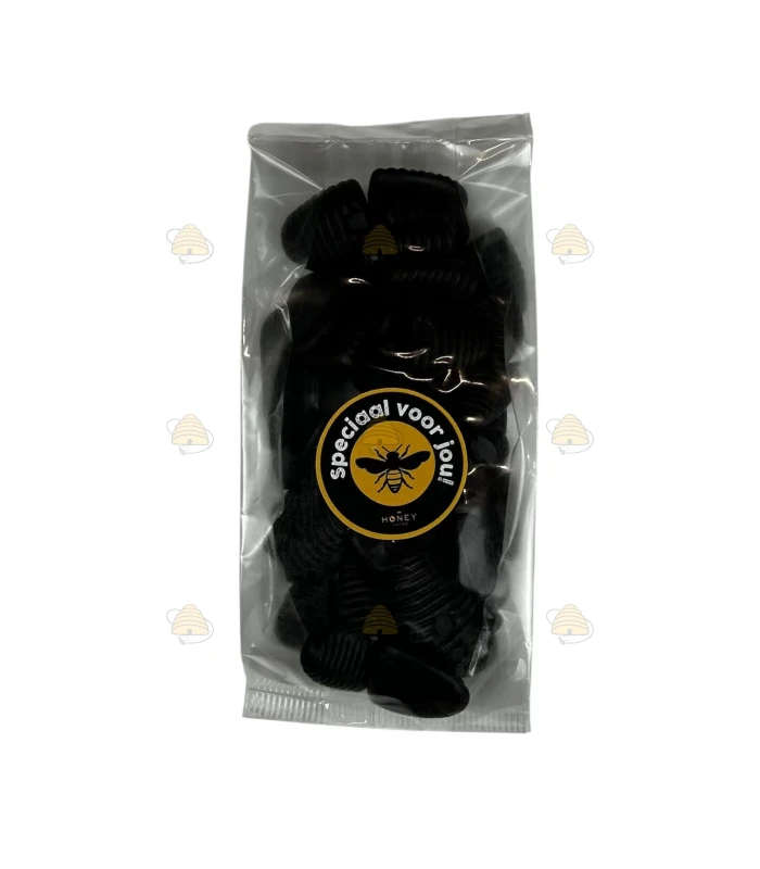 Zakje met heerlijk zoete (niet zoute) honingdrop, verpakt per 200 gram. Een echte traktatie voor wie houdt van drop en honing!