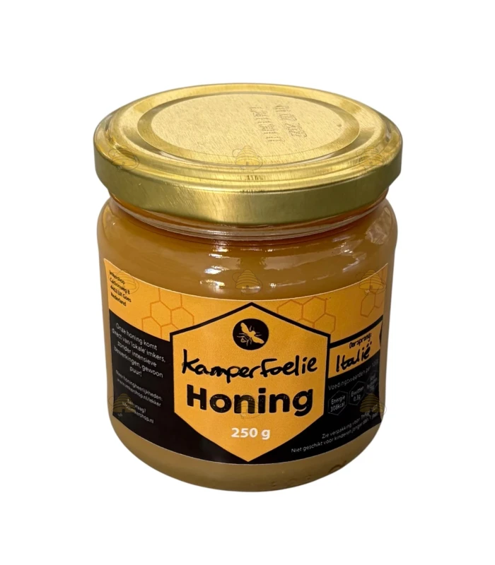 Zachte, aromatische en lichtzoet smakende honing die gemaakt wordt door bijen die de nectar uit kamperfoeliebloemen verzamelen. De honing heeft een crèmige structuur en is perfect smeerbaar voor op brood, toast of crackers. Daarnaast matcht de honing uitstekend qua smaak als toevoeging aan yoghurt, ontbijtgerechten of desserts.