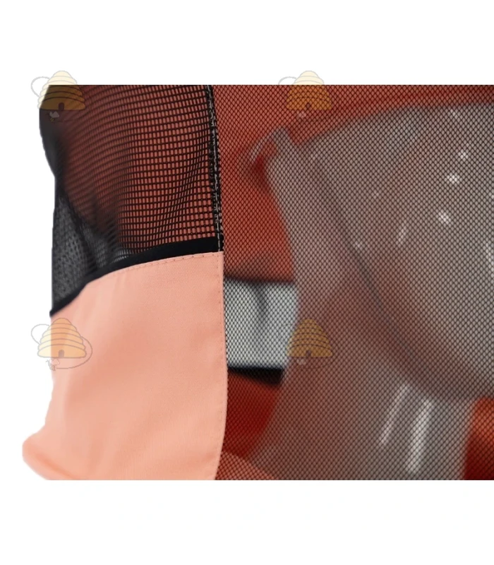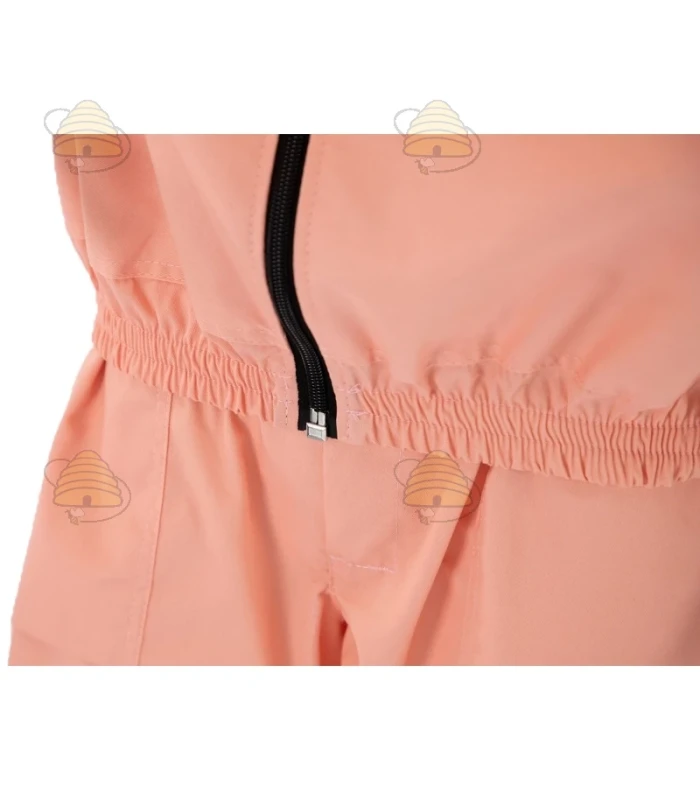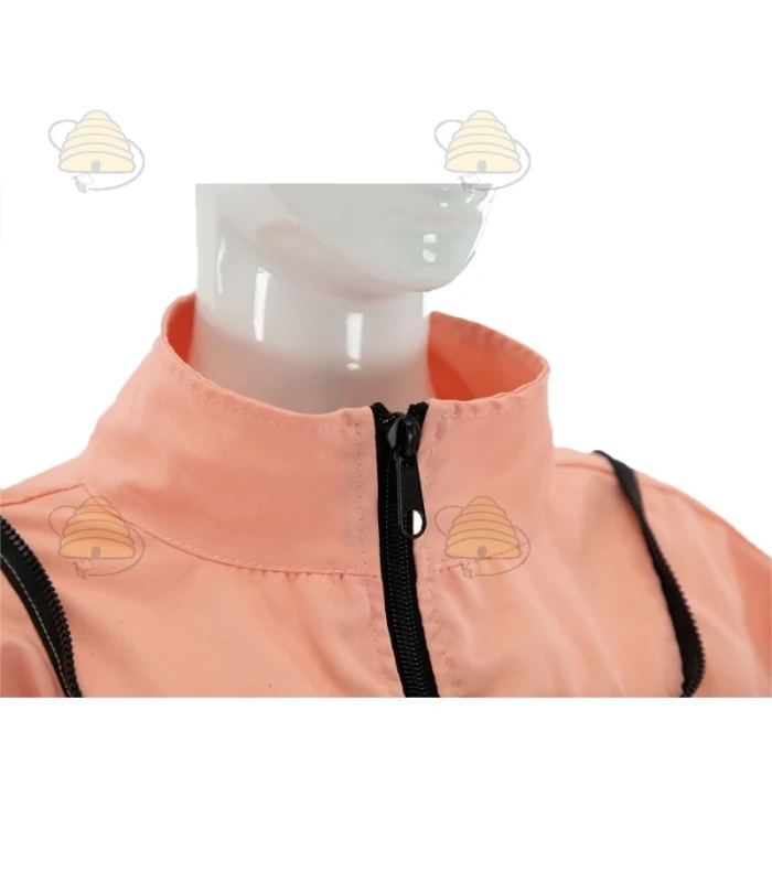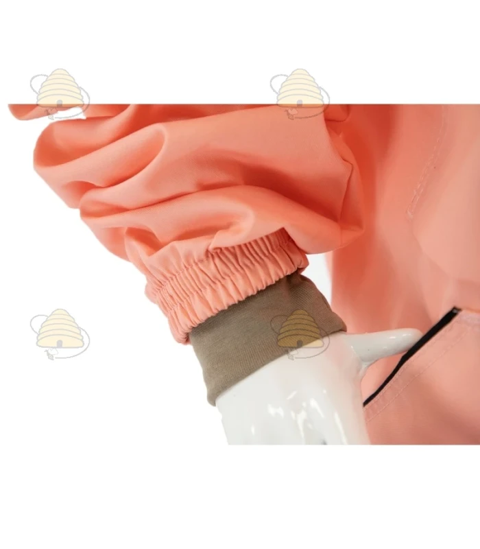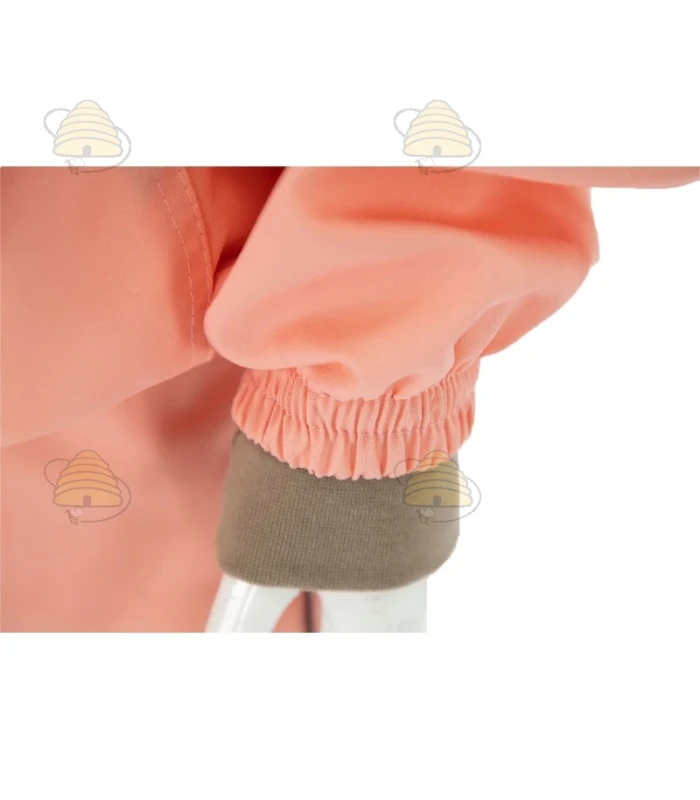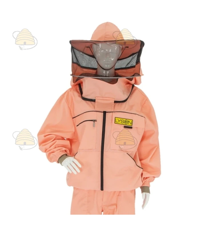 Een kleurrijk imkerjack van het merk Lyson. Het jack is zalmroze en beschikt over een ronde kap en een elastisch boord bij de mouwen. Een duurzaam imkerjack, gemaakt van ademend materiaal.