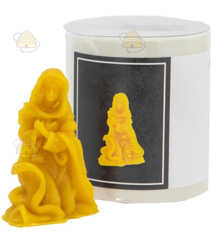 Gietvorm van Maria. Deze gietvorm is 6,5 cm hoog en 4,3 cm breed. Voor het maken van een kaars heb je zo'n 16 gram bijenwas nodig. Alle gietvormen zijn gemaakt van een hoge kwaliteit siliconen en minimaal 1000 x herbruikbaar.