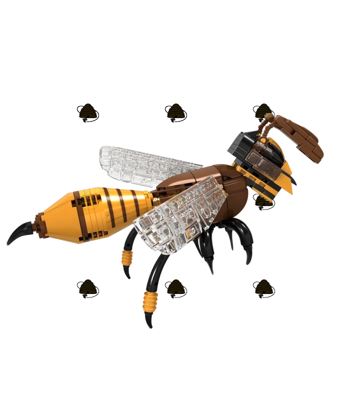 Bouwstenen set voor het maken van een honingbij. Deze set bestaat uit 204 blokjes en geeft een realistisch beeld van de anatomie van de honingbij.