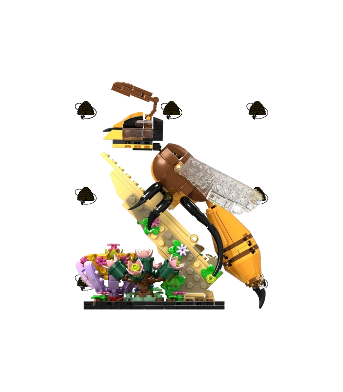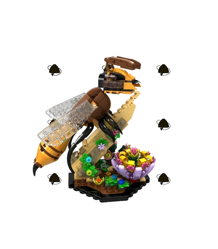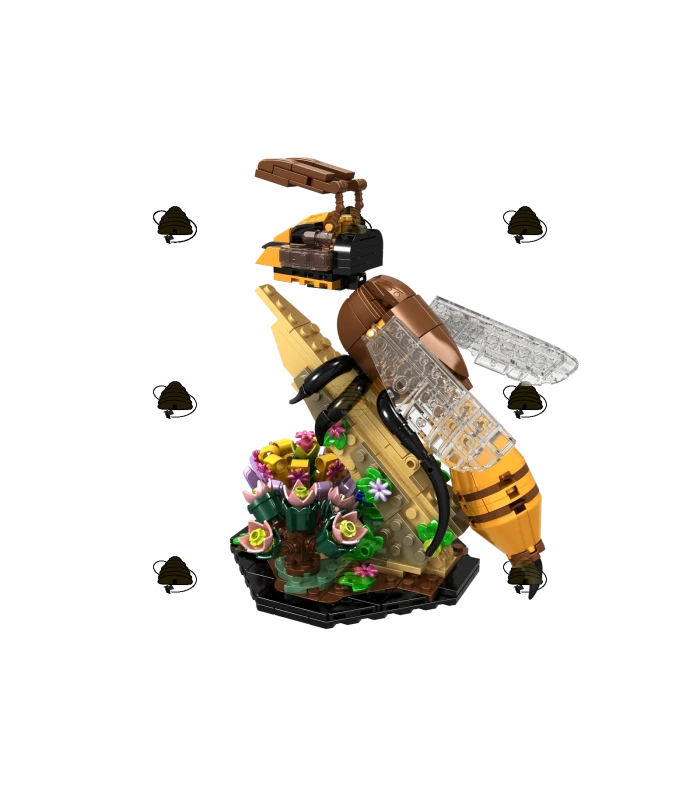 Bouwstenen set van een honingbij die op zoek is naar nectar. Deze set bestaat uit 422 blokjes en geeft een realistisch beeld van de anatomie van de honingbij.