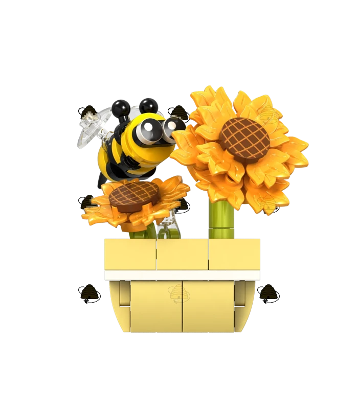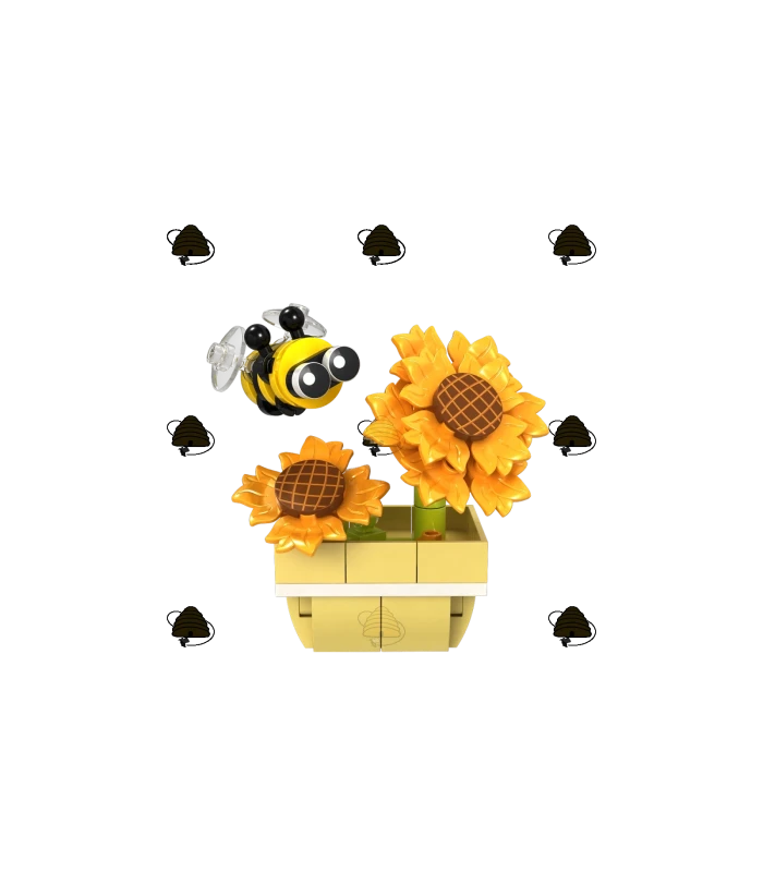 Bouwstenen set voor het maken van een bijtje op zonnebloemen. Deze set bestaat uit 85 blokjes en is heel leuk voor de jongste imkers onder ons!