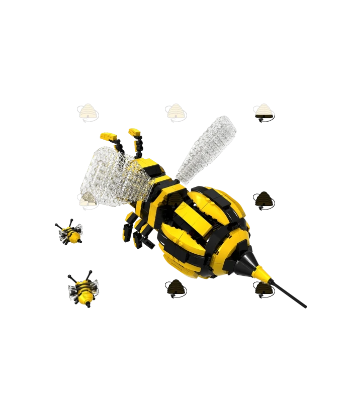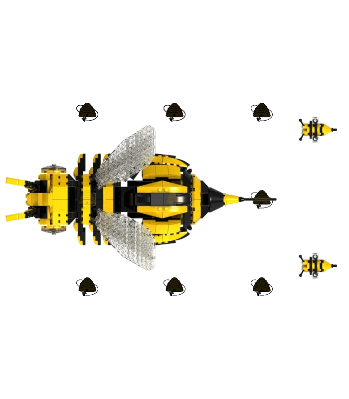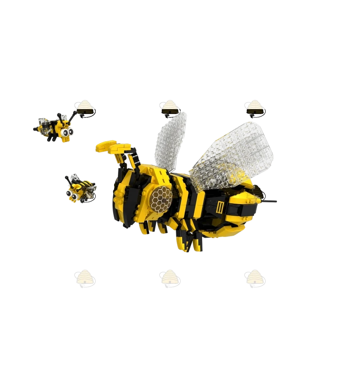 Bouwstenen set voor het maken van een Koninginnenbij en twee kleine honingbijtjes. Deze set bestaat uit 564 blokjes, creëert een groot model en heeft realistische details.
