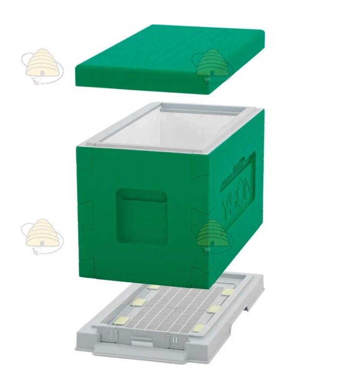 - Compatibiliteit van de bodem, voerbak en het dak. Deze onderdelen passen op elk type multi-frame bijenkast.