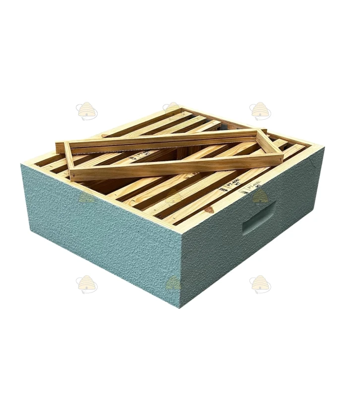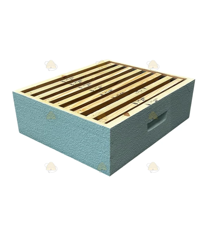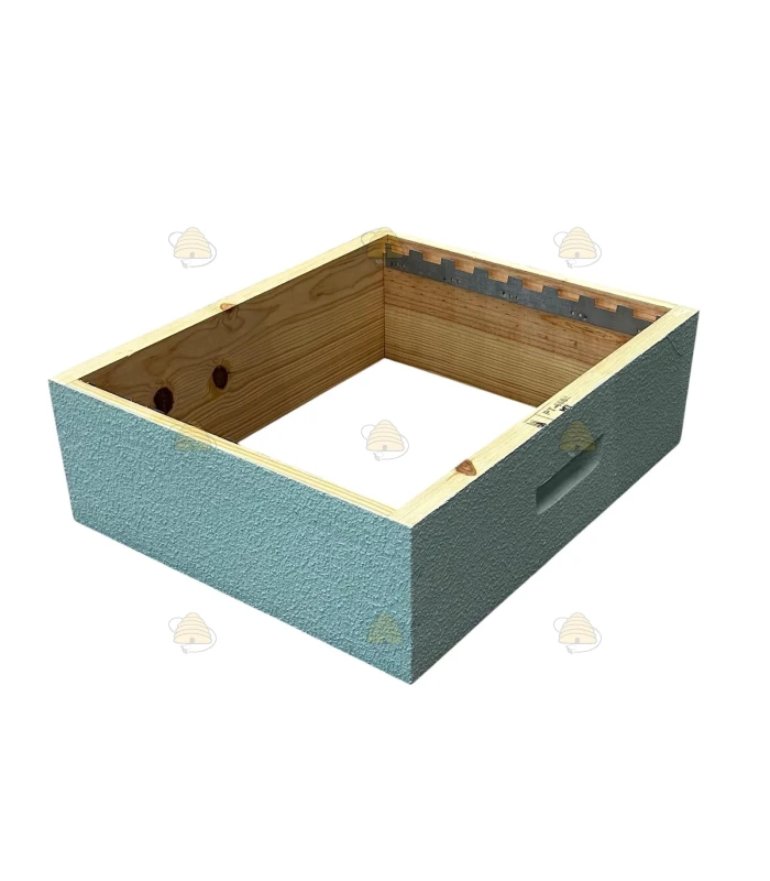 Kant en klare Langstroth US enkelwandige honingkamer. Deze honingkamer voor de Langstroth bijenkast is geverfd in de kleur lichtblauw en voorzien van 8 ramen met zaagsnede. je kan de ramen uiteraard ook zonder zaagsnede gebruiken. De kamer is ook voorzien van afstandsrepen die er voor zorgen dat de ramen netjes op hun plaats blijven hangen.