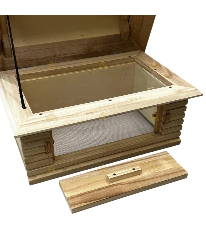 Demonstratiekastje voor 12 MiniPlus ramen. Dit kastje is 61,5 x 43 cm breed en 43 cm hoog. De kast wordt geleverd inclusief een kunststof dekplank en exclusief MiniPlus ramen. Het kastje is voorzien van een kijkvenster met glasplaatje die je open en dicht kan doen door middel van een houten plaatje.