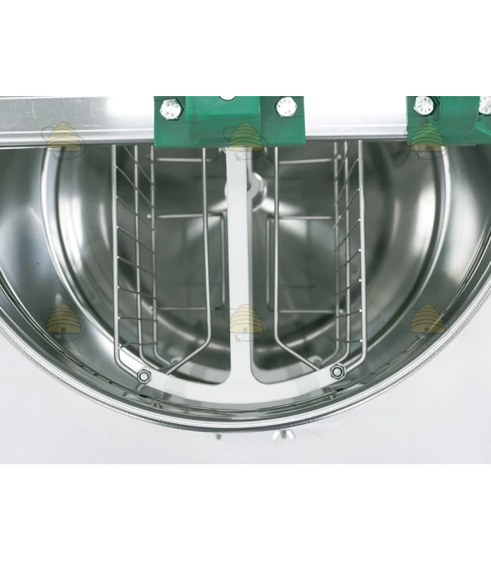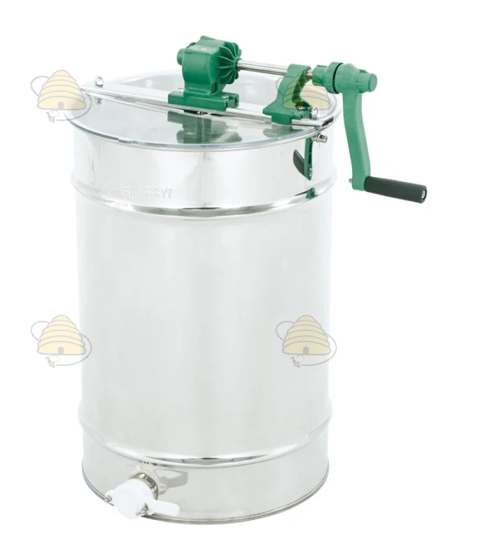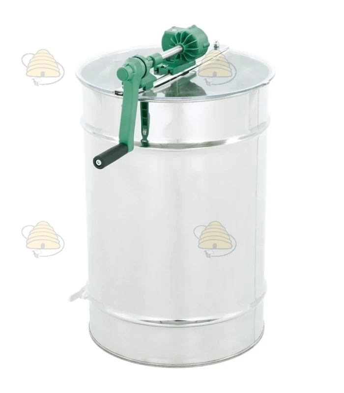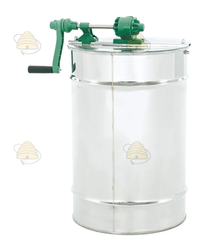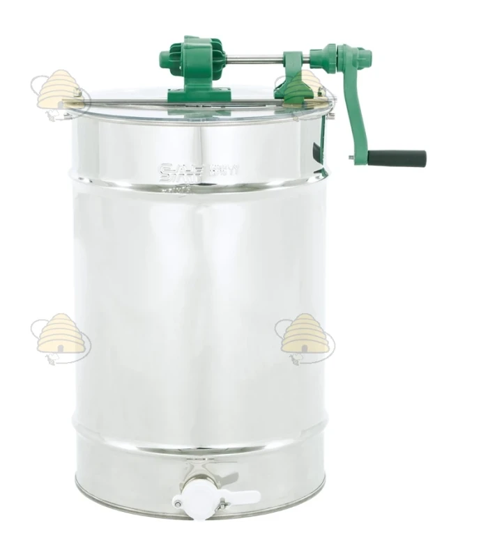 Tafelmodel 2-raams handmatige honingslinger van het merk SAF Natura. Het vat van deze honingslinger heeft een diameter van 420 mm en een hoogte van 600 mm, is gemaakt van zuurbestendig, voedselveilig roestvrij staal en is zeer degelijk en verstijfd met een drievoudige vouw. De slinger is ontworpen voor Dadant raammaat en/ of kleiner.