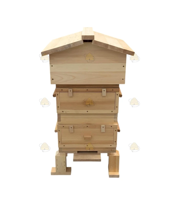 Deze Warré bijenkast is geschikt voor de imker die op natuurlijke wijze wilt imkeren. In de Warré bijenkast bouwen de bijen zelf hun raat, wat natuurlijk imkert. Deze kast is voorzien van twee broedkamers met kijkvenster waarmee je van buitenaf de kast ook mee kan kijken wat er zich binnenin de kast afspeelt. Volg met groot gemak de ontwikkeling van je bijenvolk. Mocht je liever wel met ramen en kunstraat werken in deze bijenkast dan is dit ook mogelijk.